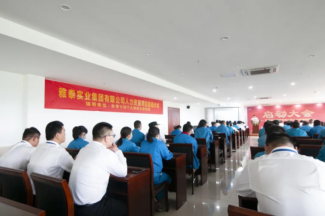 為提升企業(yè)整體管理水平,創(chuàng)造更為優(yōu)質(zhì)的人才環(huán)境,5月21日上午,集團(tuán)特邀臺(tái)灣VMTA健峰企管集團(tuán)導(dǎo)入人力資源輔導(dǎo)項(xiàng)目,在江蘇雅泰召開雅泰實(shí)業(yè)集團(tuán)人力資源輔導(dǎo)項(xiàng)目啟動(dòng)大會(huì)。