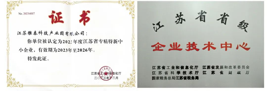 江蘇雅泰喜獲“江蘇省專(zhuān)精特新”、“江蘇省企業(yè)技術(shù)中心”兩項(xiàng)省級(jí)資質(zhì)榮譽(yù),標(biāo)志著江蘇雅泰科學(xué)管理體系、技術(shù)研發(fā)能力邁上了更高的臺(tái)階!