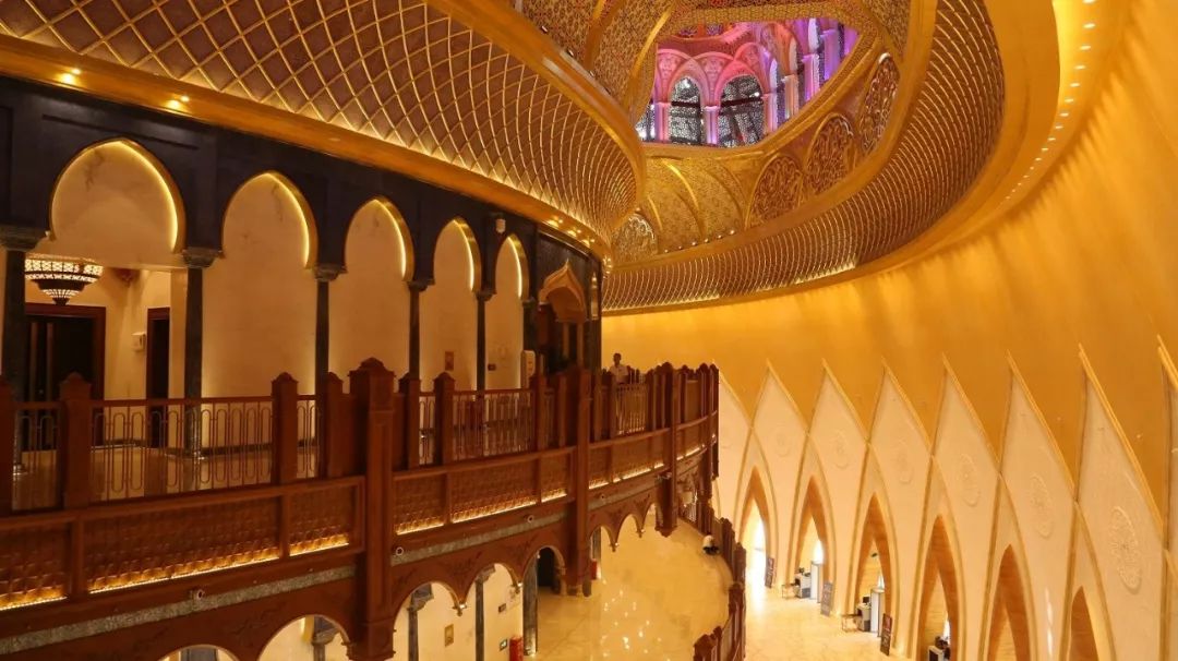 座落于昌吉的新疆大劇院,是中國目前最具民族文化特征的標(biāo)志性建筑,也是印象西域國際文化旅游產(chǎn)業(yè)園的核心建筑。主體坐落在平緩的臺(tái)基上,以盛開的天山雪蓮為原型,通過抽象與創(chuàng)新的設(shè)計(jì)手法,形成里外套層的穹頂造型主體形象。